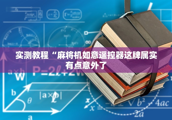 今日重磅消息“麻将机程序2025最新款”(确实真的遥控)